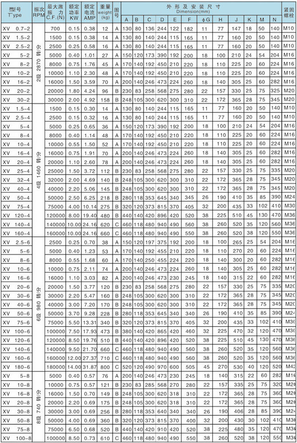 XVM振動電機參數: